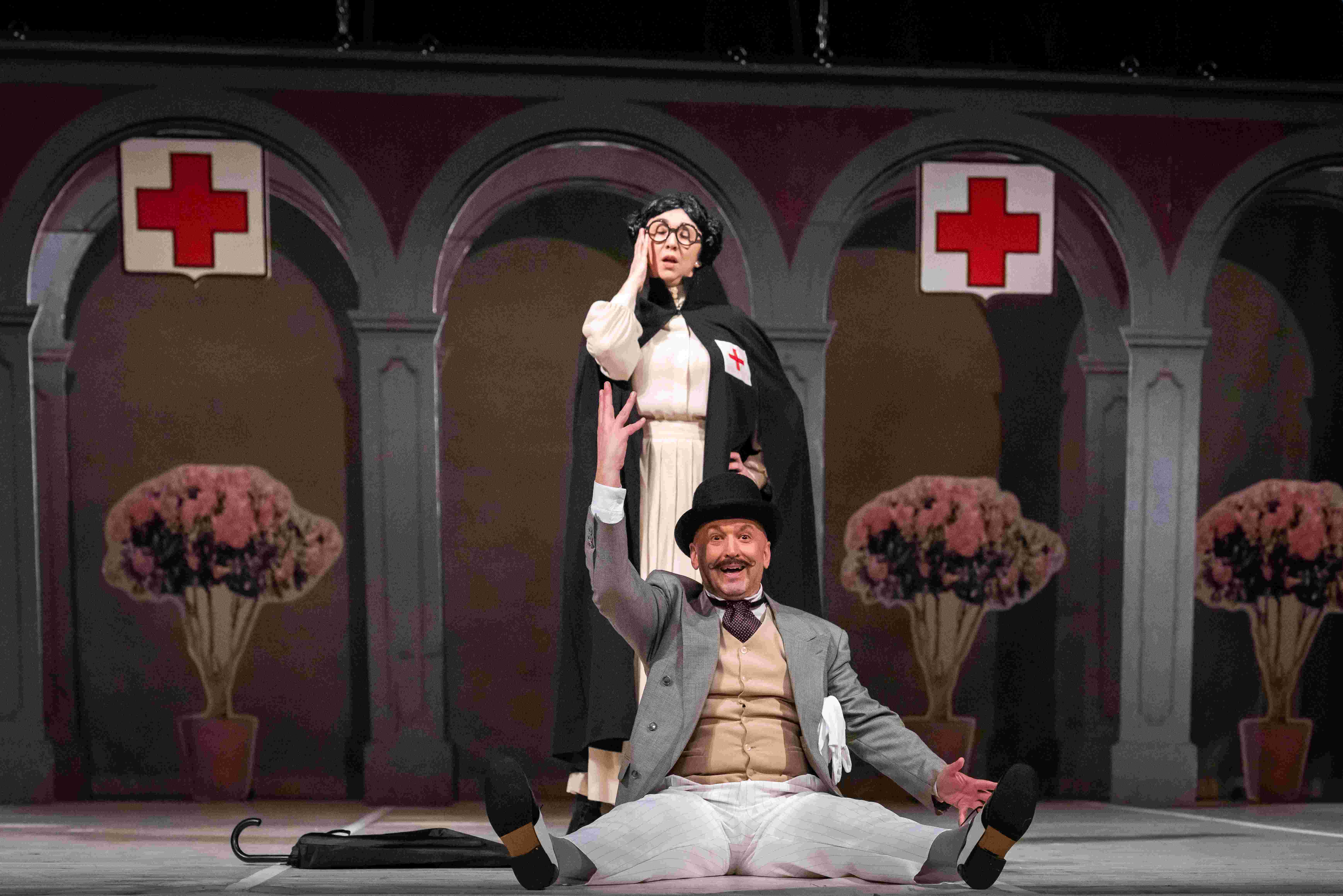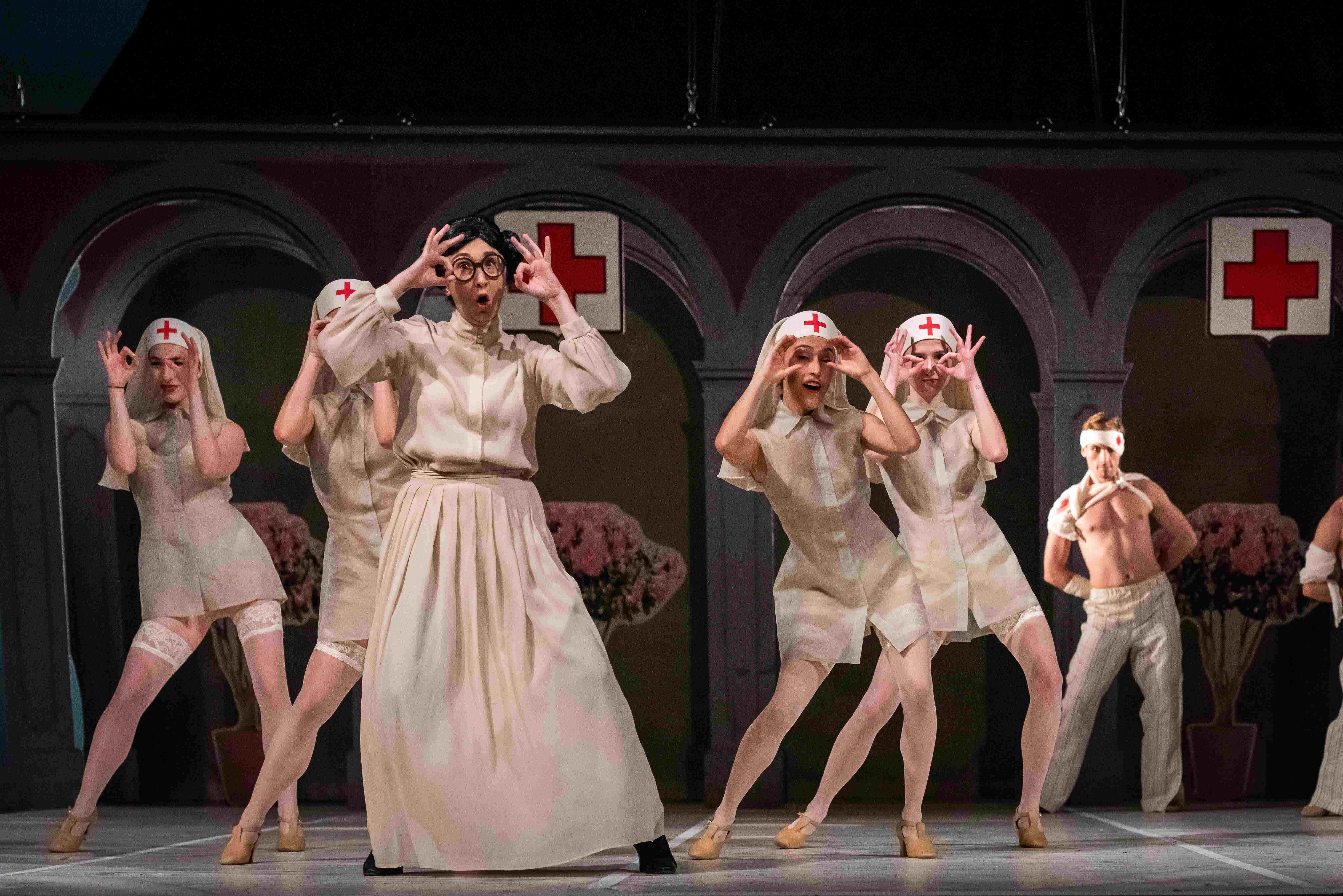Šjoru Petronilu igra Hanadi Karić, Tonkica je Vedrana Arapović, Ileš Bečei utjelovit će lik Mirka/Petra Petrovića, Gina Tipurić igra lik Marice, Nedim Bašić lik Zvone, Siniša Markanović lik Marinka, Majo Marilović šjor Dane. Šjor File je Dejan Kajević, šjor Bepo Jasmin Bašić, redarstveni organ predstavlja Josip Katavić, Felicio-Picaferaj je Dejan Bojanić. Lik Miss Eveline Beautyflower, sestre-bolničarke, direktorice utjelovit će solistica Opere NPS Melisa Hajrulahović-Tomić, Lejla Huseinćehajić iznijet će lik Almette, dok će američkog vojnika igrati Davor Ebner. Pukovnika Marquisa Armanda Monforta de Quimperville igrat će glumac dramskog ansambla NPS Mak Čengić.