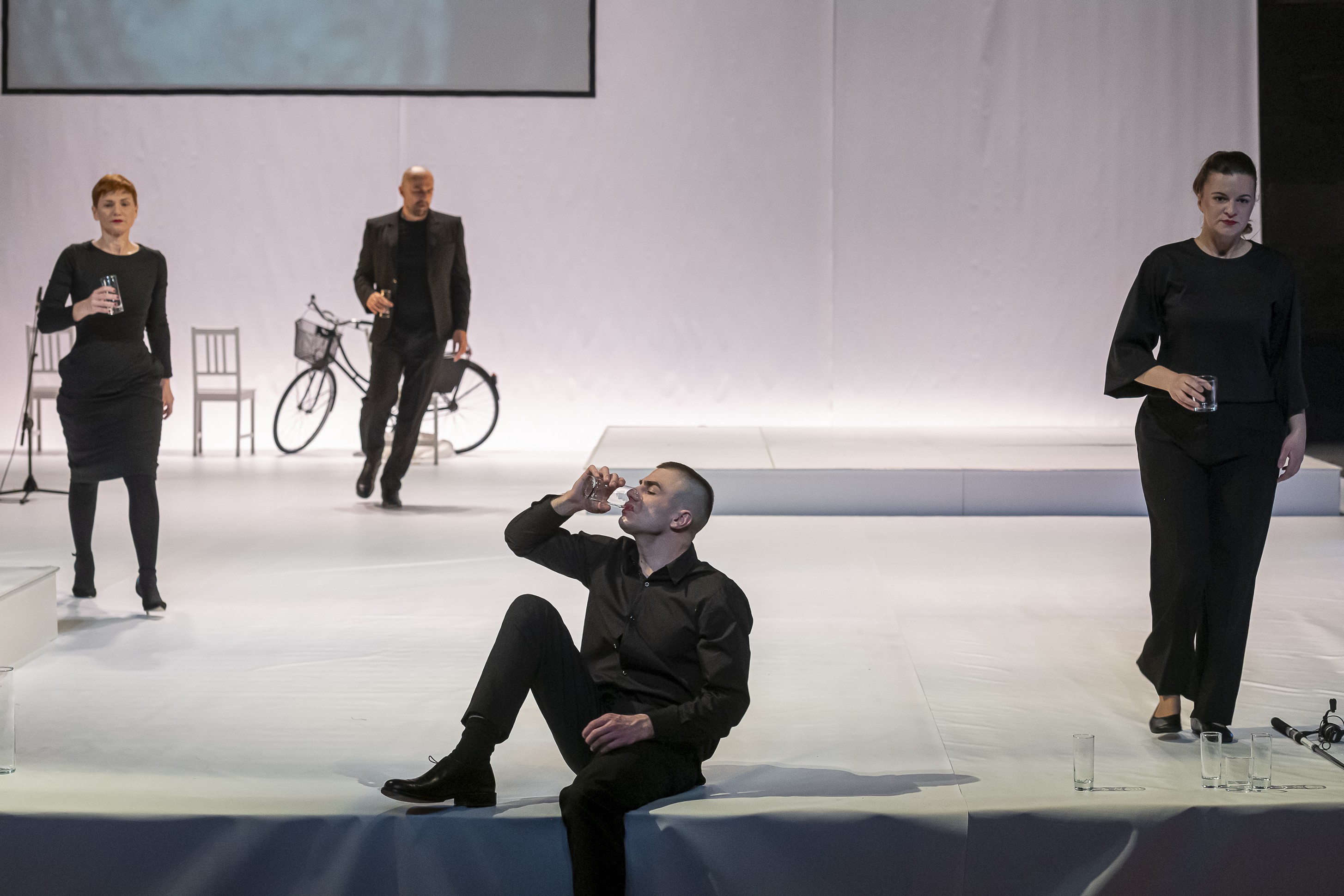 U predstavi igraju: Ermin Sijamija, Slaven Vidak, Vedrana Božinović, Sanela Krsmanović-Bistrivoda, Dino Bajrović i muzičar Rastko Zečević.