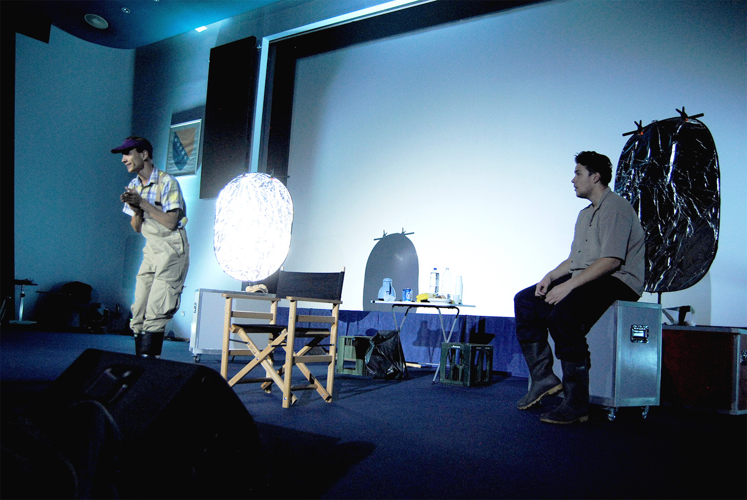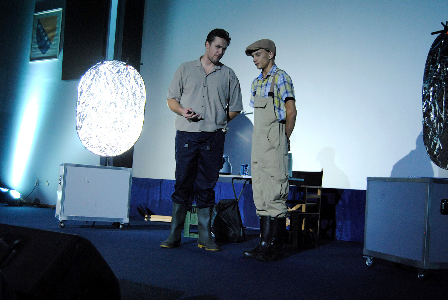 Sve likove u predstavi igraju dva brilijantna glumca – Kerim Čutuna i Haris Bidžan, diplomirani glumci Akademije scenskih umjetnosti u Sarajevu.