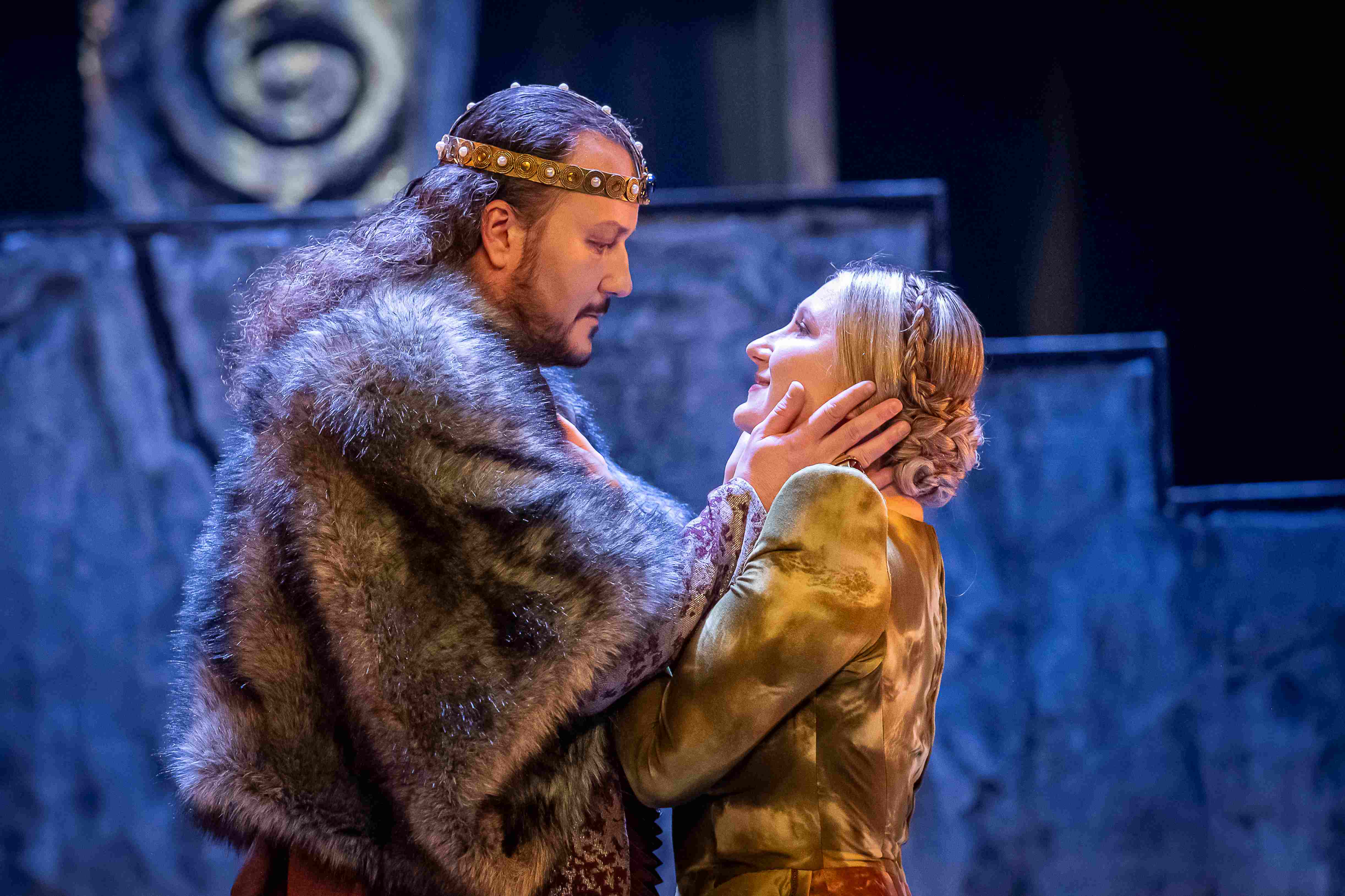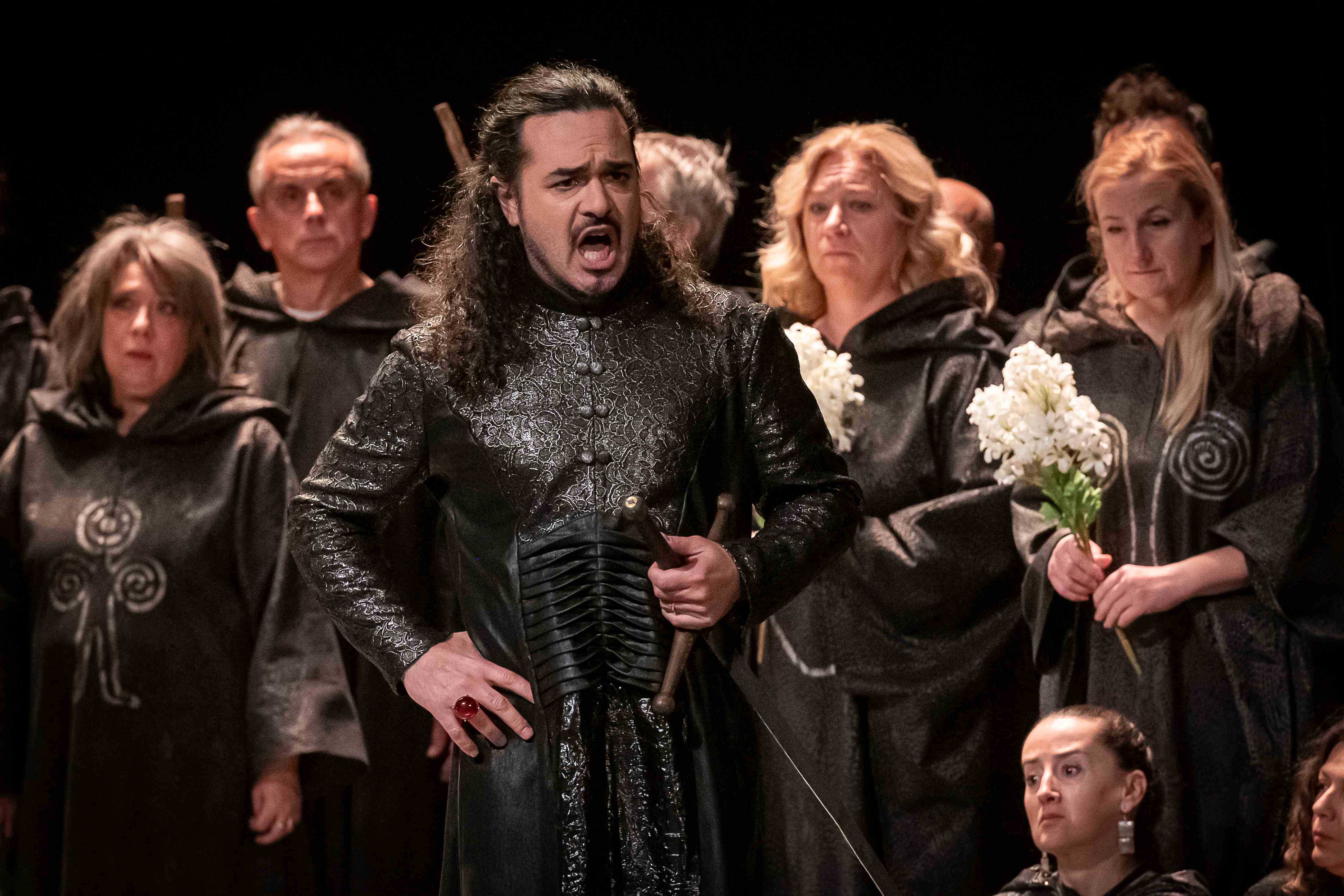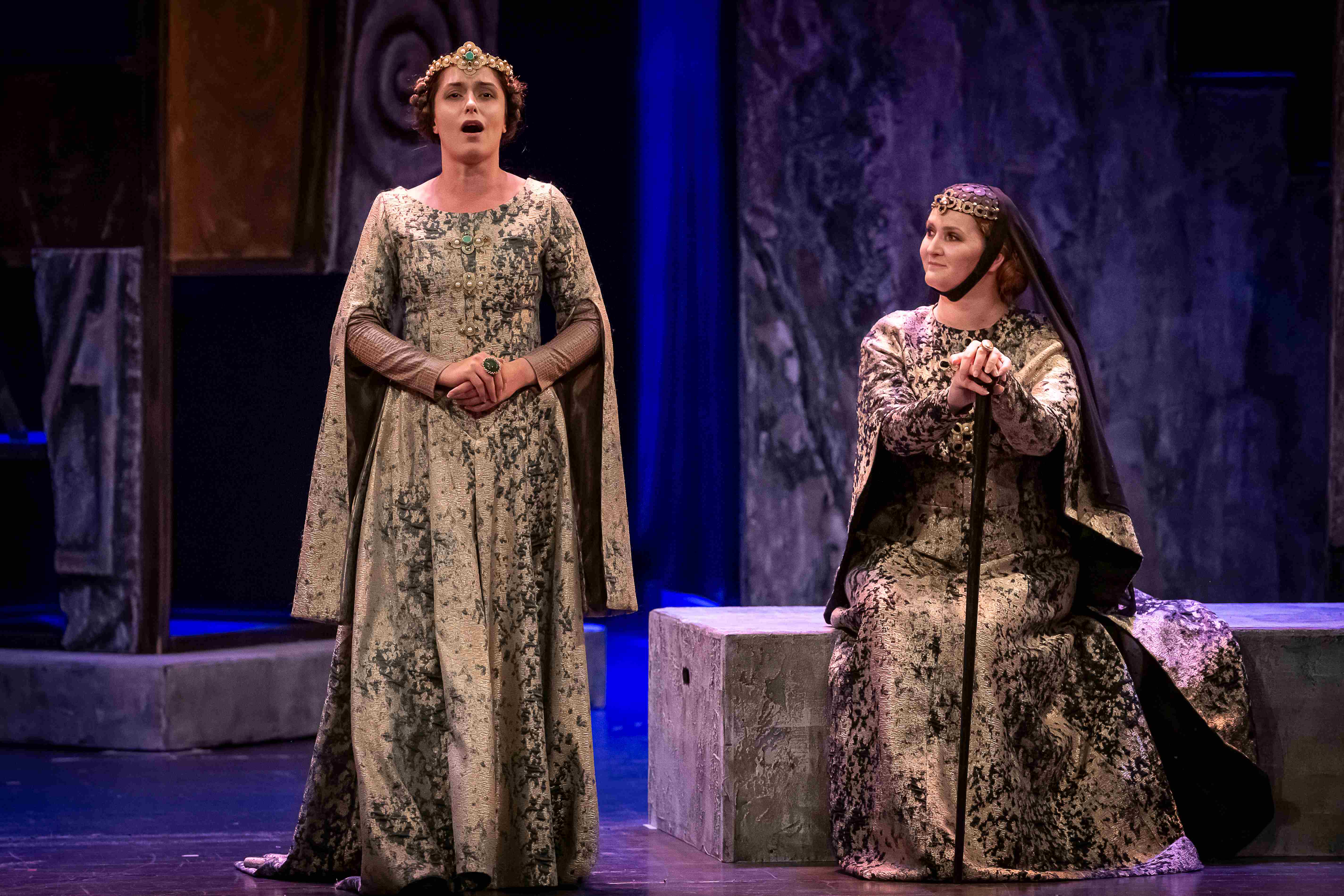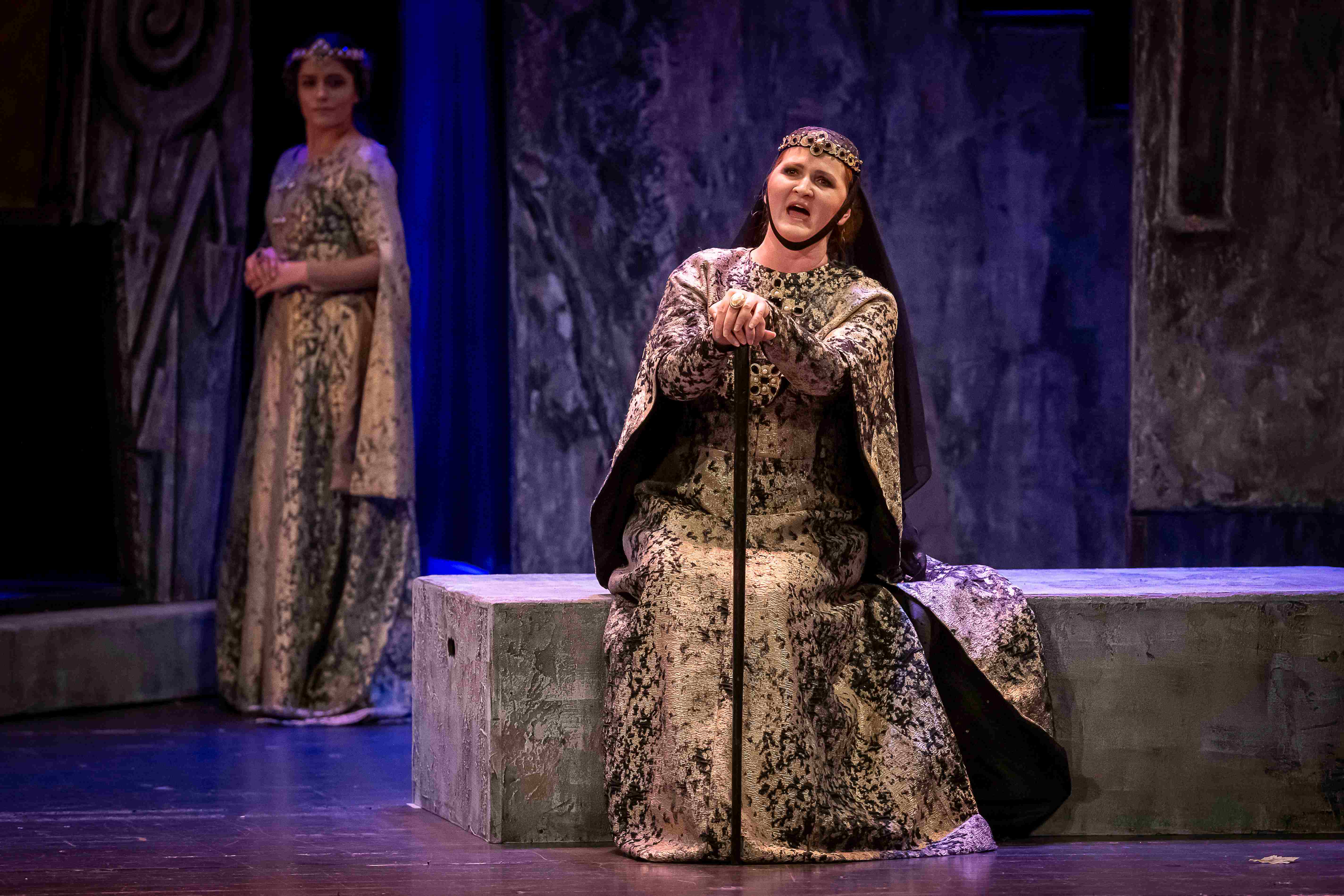 Naslovnu ulogu Tvrtka iznio je solista Opere NPS Ivan Šarić; Grubaču, Tvrtkovu nevjenčanu suprugu utjelovila je Amila Ravkić; u ulozi kneginje Jelene, Tvrtkove majke slušali smo Katarinu Kikić Marić; dok je Doroteju, kraljicu bosansku utjelovila Hana Salihović. Amir Saračević igrao je ulogu Vuka Tvrtkovog brata; Ileš Bečei lik Vuka Dabišića, plemića, zavjerenika protiv Tvrtka. Solista Opere Erol Ramadanović iznio je lik Hotjana, Tvrtkovog savjetnika. Did bosanski, poglavar Crkve bosanske je Leonardo Šarić; Vlatko Hranić, bosanski vitez i velikaš Denis Isaković.