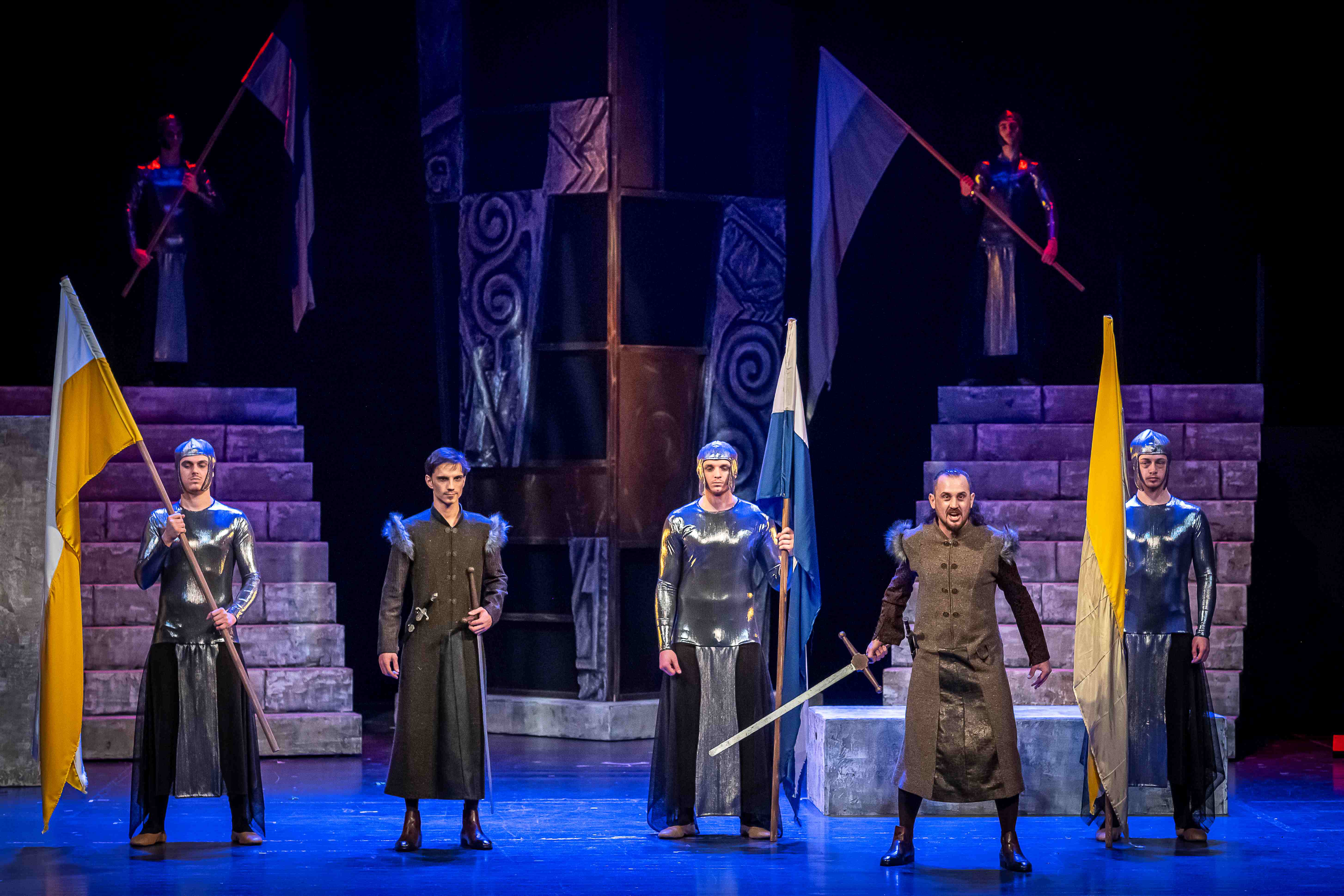 Jasmin Bašić je iznio lik Hrabrena, pristava; Elizabetu, kraljicu ugarsku Dajana Šegvić; a mletačkog izaslanika Josip Katavić. Dalmatinski izaslanik je Siniša Markanović; Nicolo, Ermin Ašćerić; Abdulaziz, Nedim Bašić. Lazarovog glasnika igrao je Edin Daši, ugarskog glasnika Dejan Kajević, a Vladislava Dabišića, brata Vuka Dabišića Haris Bidžan.